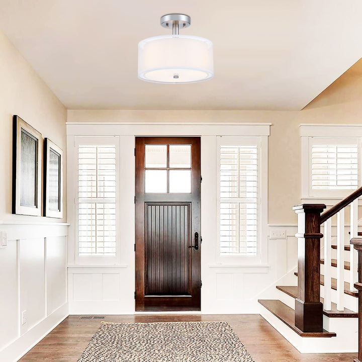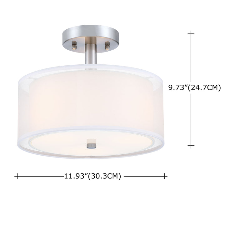 3-Light Semi Flush Mount Ceiling Light Fixture with Fabric Shade